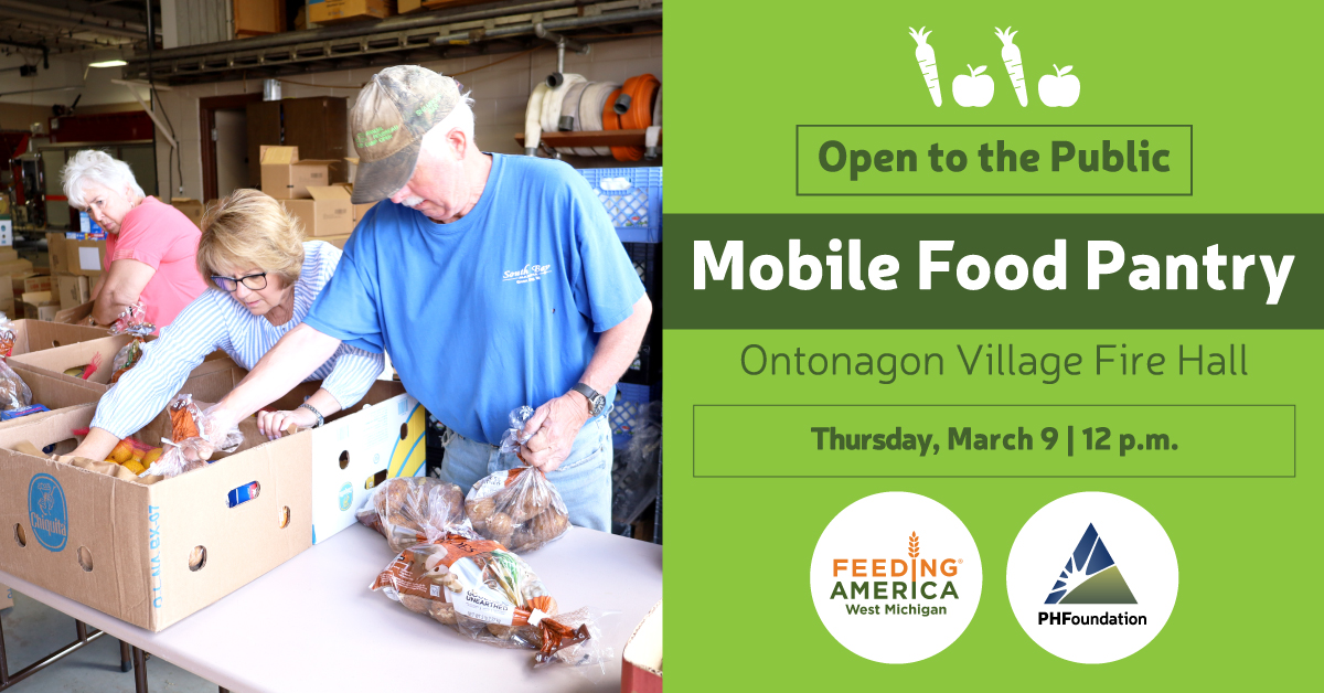 First Event is Wednesday, March 6 A Feeding America West Michigan mobile food pantry is coming back to Ontonagon for March 2024. Mobile food pantries ...